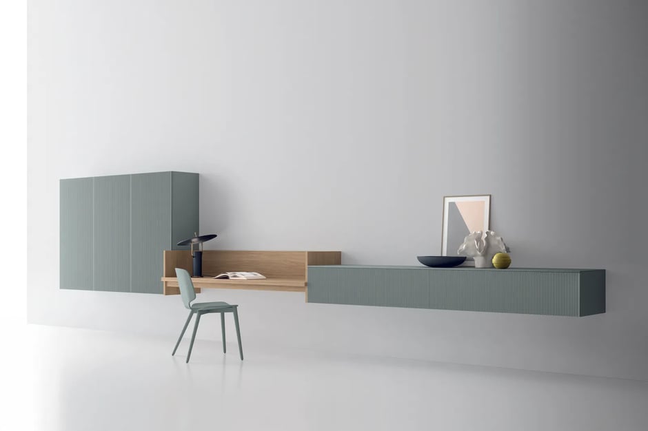 Questo approccio ispirato ai cicli naturali è testimoniato da un elemento delle collezioni Santalucia Mobili: la finitura Grecato, un dettaglio che unisce matericità, ritmo visivo e versatilità progettuale che consiste in un pannello in legno MDF (Medium Density Fibreboard, pannello di fibra a media densità), pantografato, successivamente rivestito da un foglio di PET e infine laccato. La lavorazione che caratterizza la superficie riproduce esteticamente un effetto millerighe, che rende la finitura interessante alla vista per la sua dinamicità e piacevole al tatto per la tridimensionalità: questa texture dona infatti profondità e movimento, trasformando ogni arredo in un segno grafico contemporaneo e sofisticato capace di generare un’identità forte e riconoscibile per ogni spazio.