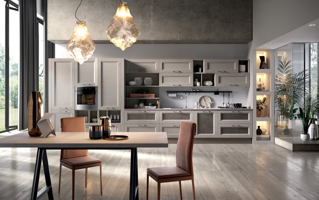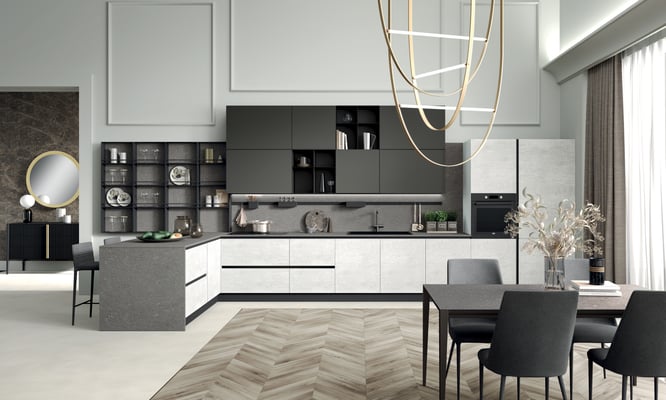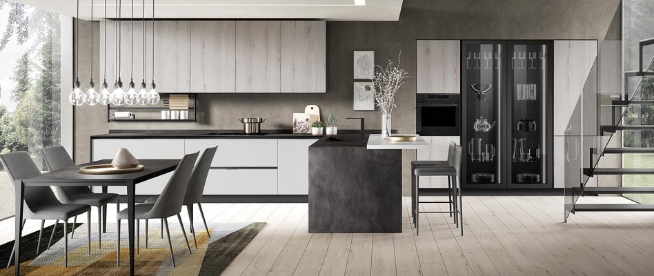 Tenendo sempre sotto controllo i cicli produttivi della cucina e i nuovi materiali del mondo contemporaneo, nell’ampia gamma delle loro novità.
